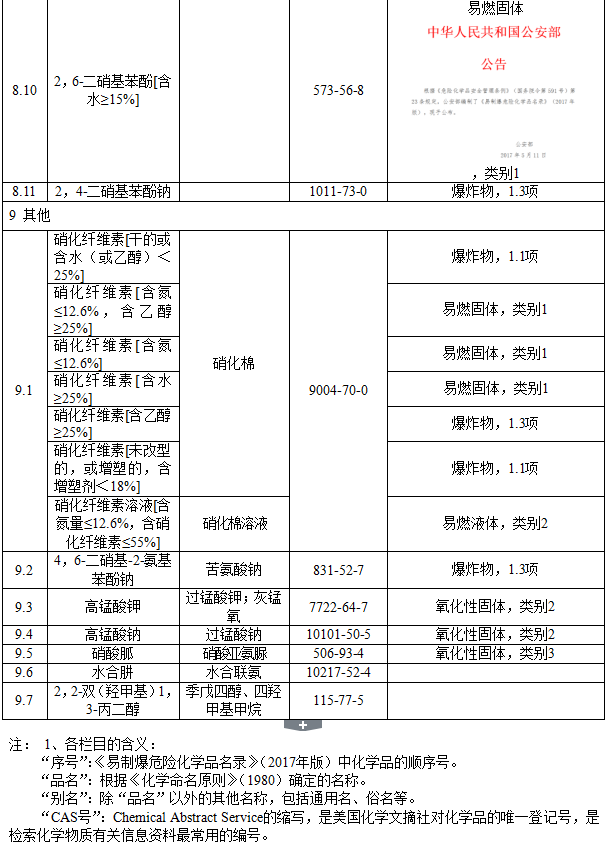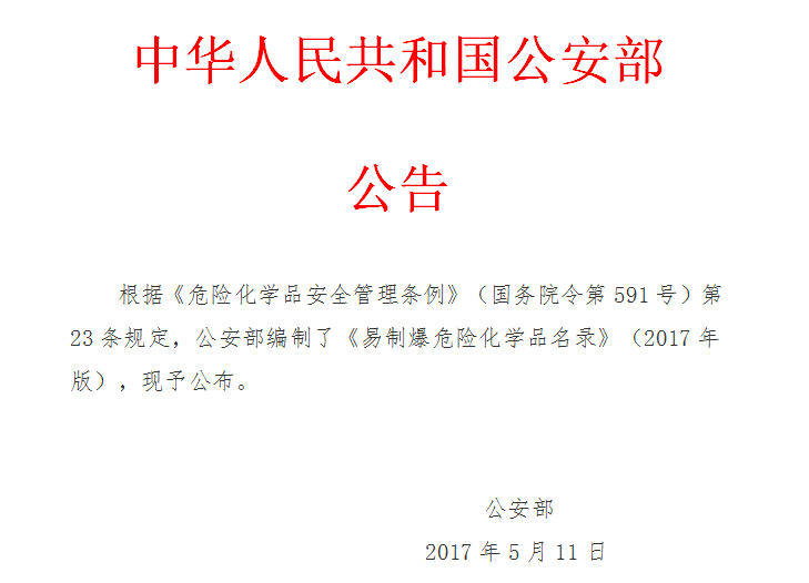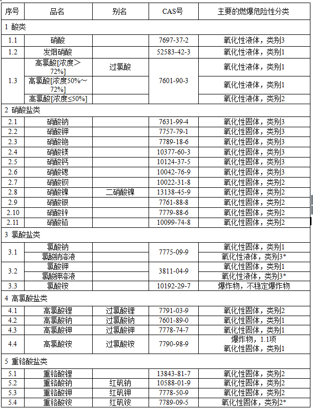 易制爆危險化學(xué)品名錄