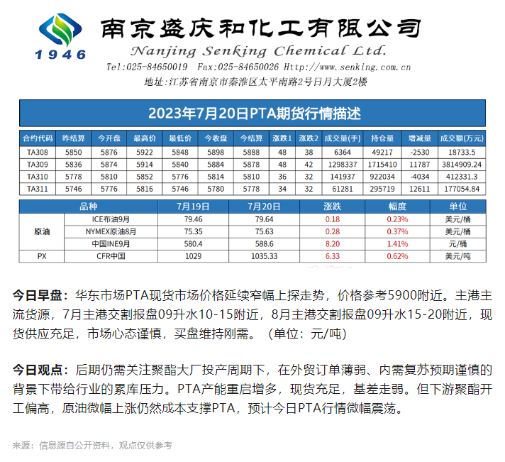 PTA最新行情通報:預計今日PTA行情微幅震蕩