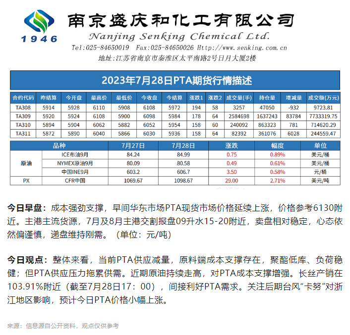 PTA最新行情通報:預計今日PTA價(jià)格小幅上漲