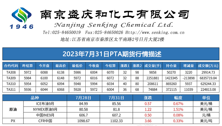 今日觀(guān)點(diǎn):PTA現貨充足,基差微幅走強。原油震蕩在近三個(gè)月高位,PX行情上漲,成本支撐PTA,預計今日PTA行情偏強震蕩。