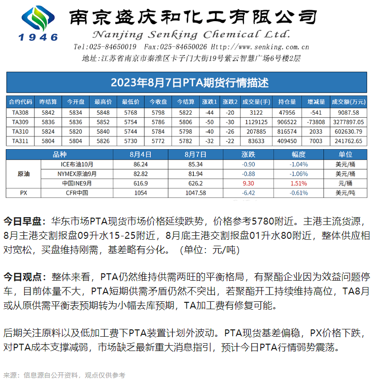 PTA最新行情通報:預計今日PTA行情弱勢震蕩