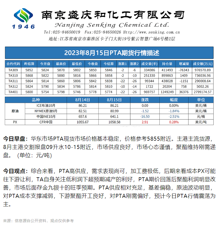 PTA最新行情通報:預計今日PTA行情震蕩為主