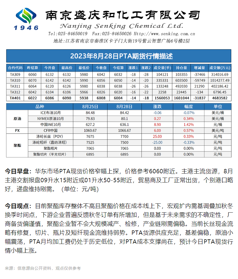 PTA最新行情通報:預計今日PTA現貨行情小幅上漲