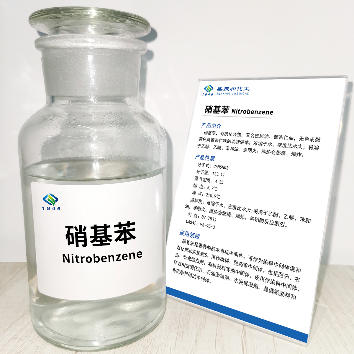 硝基苯,有機化合物,又名密斑油、苦杏仁油,無(wú)色或微黃色具苦杏仁味的油狀液體。難溶于水,密度比水大; 易溶于乙醇、乙醚、苯和油。遇明火、高熱會(huì )燃燒、爆炸。與硝酸反應劇烈。硝基苯由苯經(jīng)硝酸和硫酸混合硝化而得。作有機合成中間體及用作生產(chǎn)苯胺的原料。用于生產(chǎn)染料、香料、炸藥等有機合成工業(yè)。