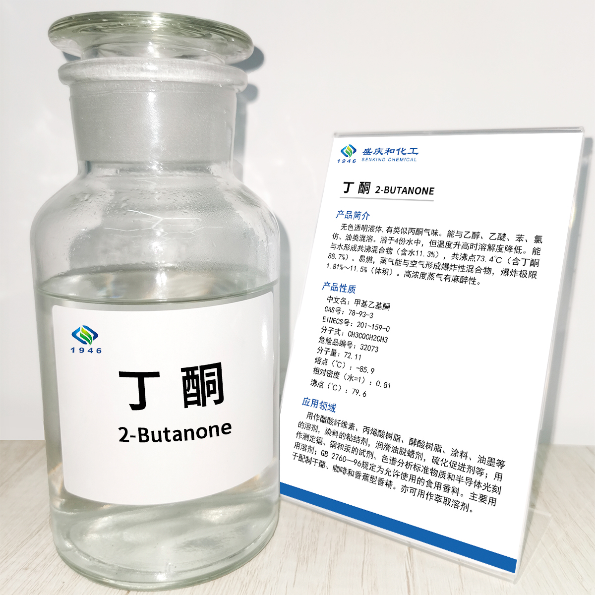 甲基乙基酮是一種有機化合物,化學(xué)式為CH3COCH2CH3,分子量為72.11。為無(wú)色透明液體,有類(lèi)似丙酮氣味。易揮發(fā)。能與乙醇、乙醚、苯、氯仿、油類(lèi)混溶。溶于4份水中,但溫度升高時(shí)溶解度降低,能與水形成共沸混合物。低毒,半數致死量(大鼠,經(jīng)口)3300mg/kg。易燃,蒸氣能與空氣形成爆炸性混合物。高濃度蒸氣有麻醉性。