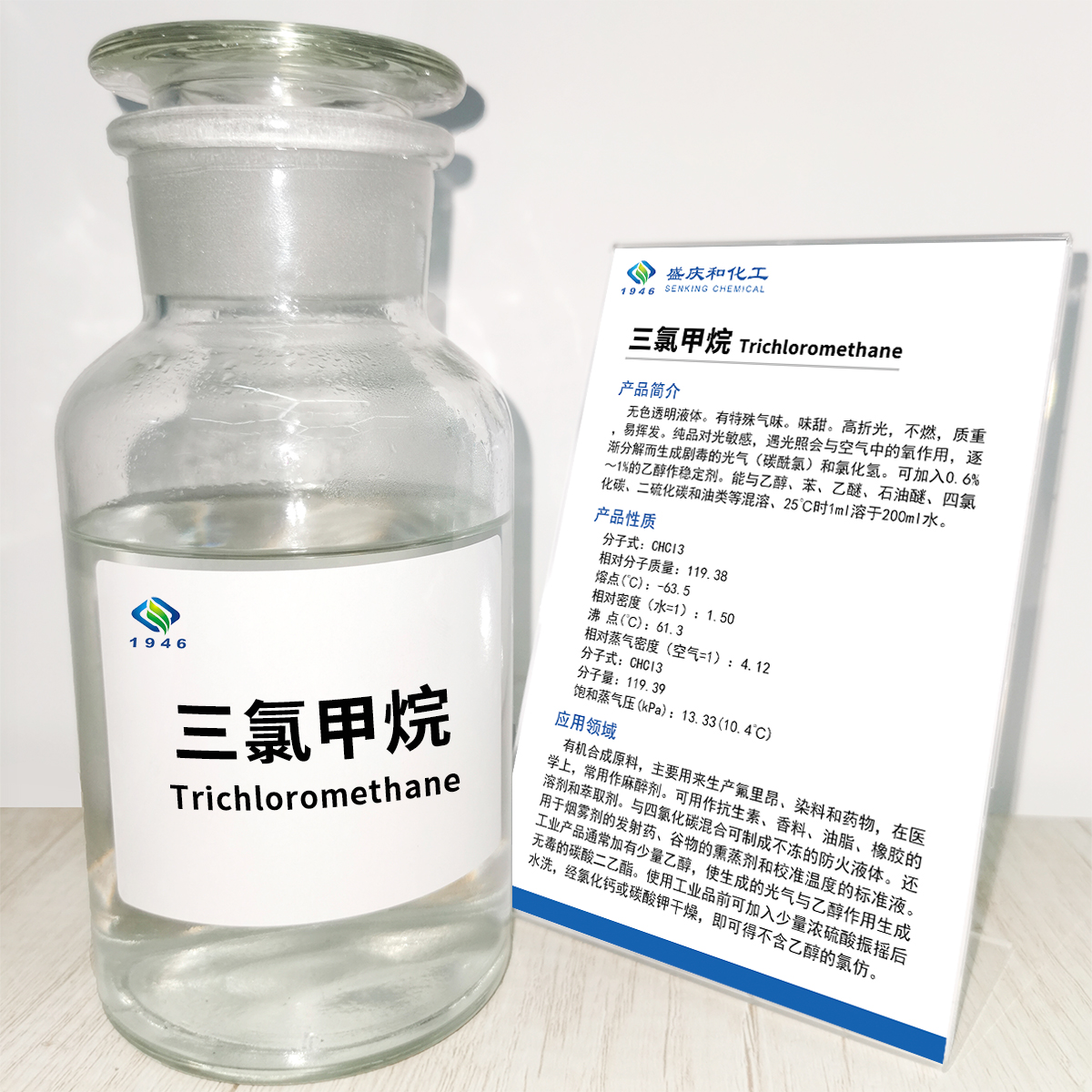 無(wú)色透明液體。有特殊氣味。味甜。高折光,不燃,質(zhì)重,易揮發(fā)。純品對光敏感,遇光照會(huì )與空氣中的氧作用,逐漸分解而生成劇毒的光氣(碳酰氯)和氯化氫??杉尤?.6%~1%的乙醇作穩定劑。能與乙醇、苯、乙醚、石油醚、四氯化碳、二硫化碳和油類(lèi)等混溶、 25℃時(shí)1ml溶于200ml水。相對密度1.4840。凝固點(diǎn)-63.5℃。沸點(diǎn)61~62℃。折光率1.4476。低毒,半數致死量(大鼠,經(jīng)口)1194mg/kg。有麻醉性。有致癌可能性。