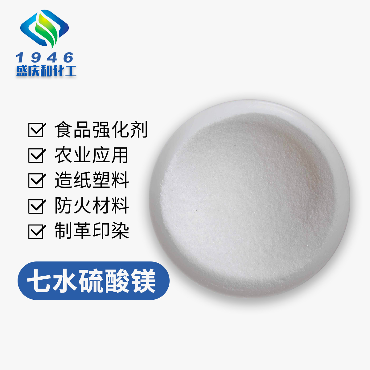 七水硫酸鎂,又名硫苦、苦鹽、瀉利鹽、瀉鹽, 化學(xué)式為MgSO4·7H2O),為白色或無(wú)色的針狀或斜柱狀結晶體,無(wú)臭,涼并微苦。受熱分解,逐漸脫去結晶水變?yōu)闊o(wú)水硫酸鎂。主要用于肥料、制革、印染、催化劑、造紙、塑料、瓷器、顏料、火柴、炸藥和防火材料的制造,可用于印染細薄的棉布、絲,作為棉絲的加重劑和木棉制品的填料,醫藥上用作瀉鹽。